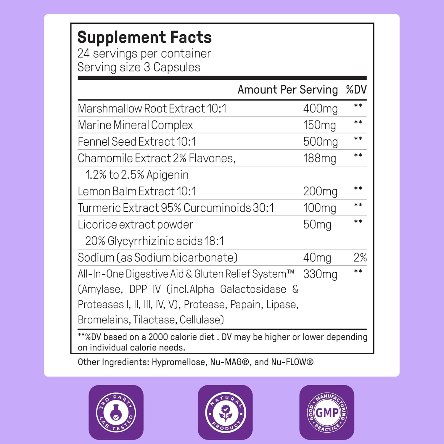 Contains a blend of natural plant extracts traditionally used in Western herbal medicine to relieve flatulence, reduce symptoms of indigestion, and decrease mild gastrointestinal tract inflammation.